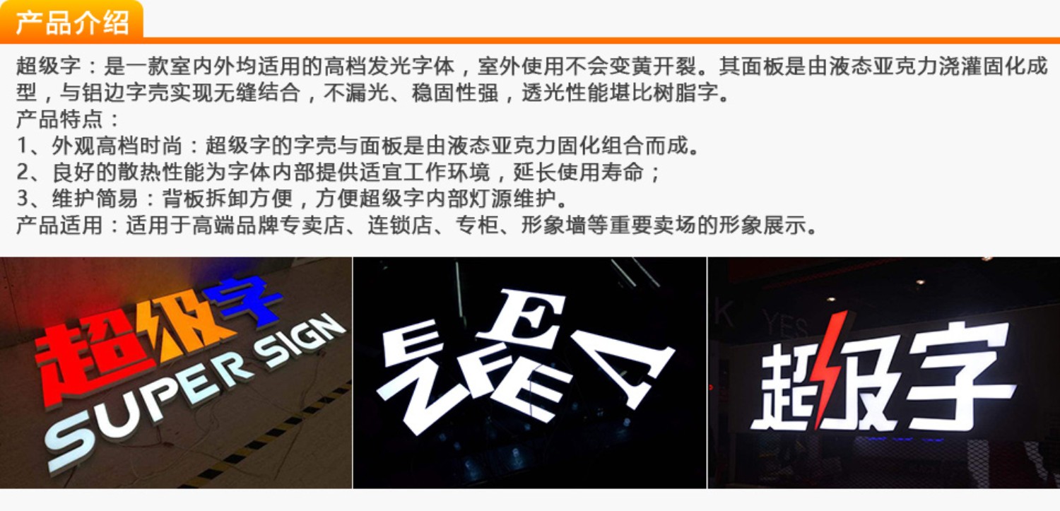 適用于室內(nèi)外的高檔發(fā)光字,無縫結(jié)合、不漏光、透光性能高