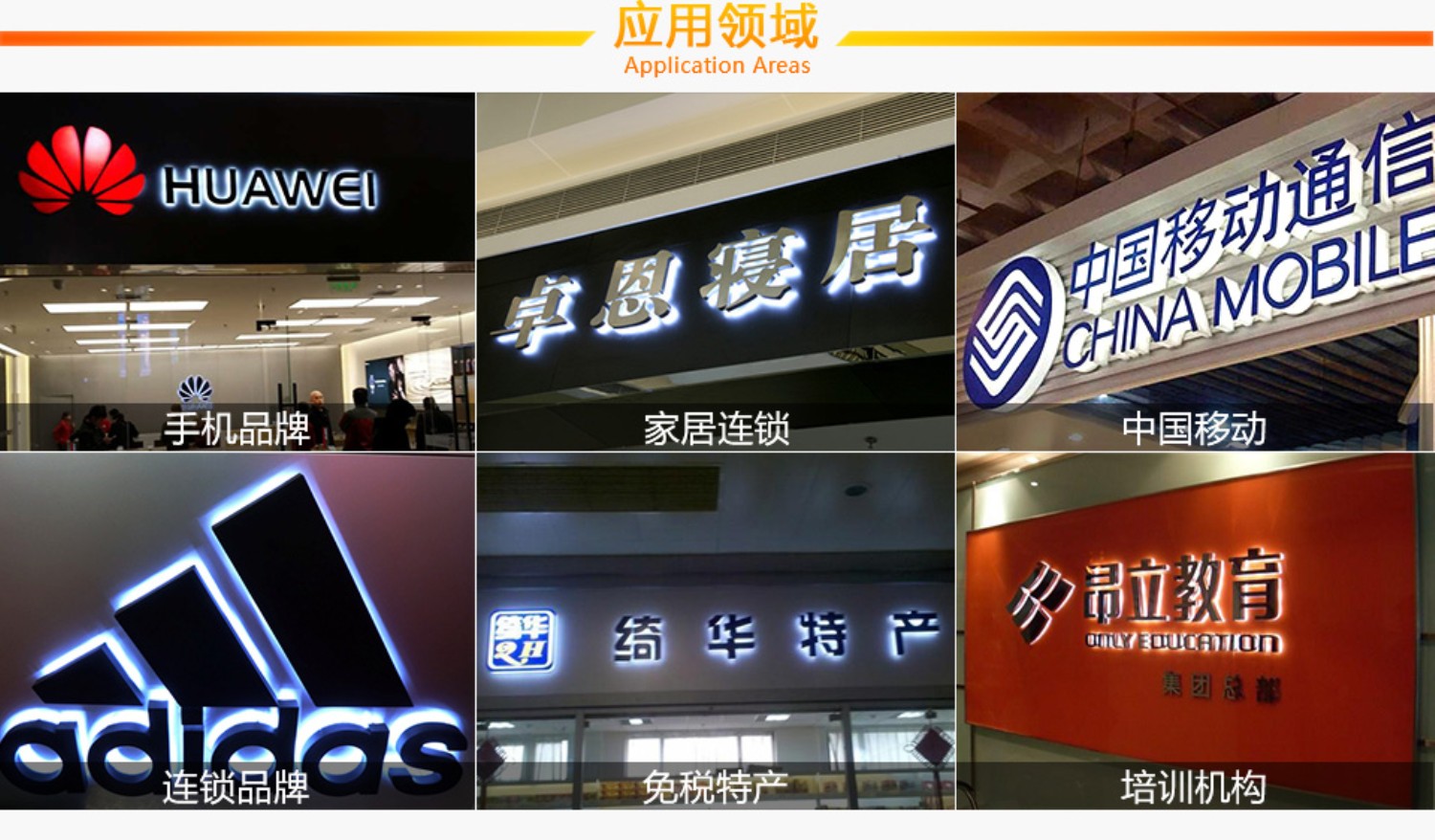 適用于高端品牌專賣店、連鎖店、專柜、形象墻等重要賣場(chǎng)