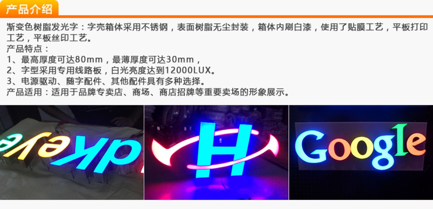 漸變色樹脂發(fā)光字