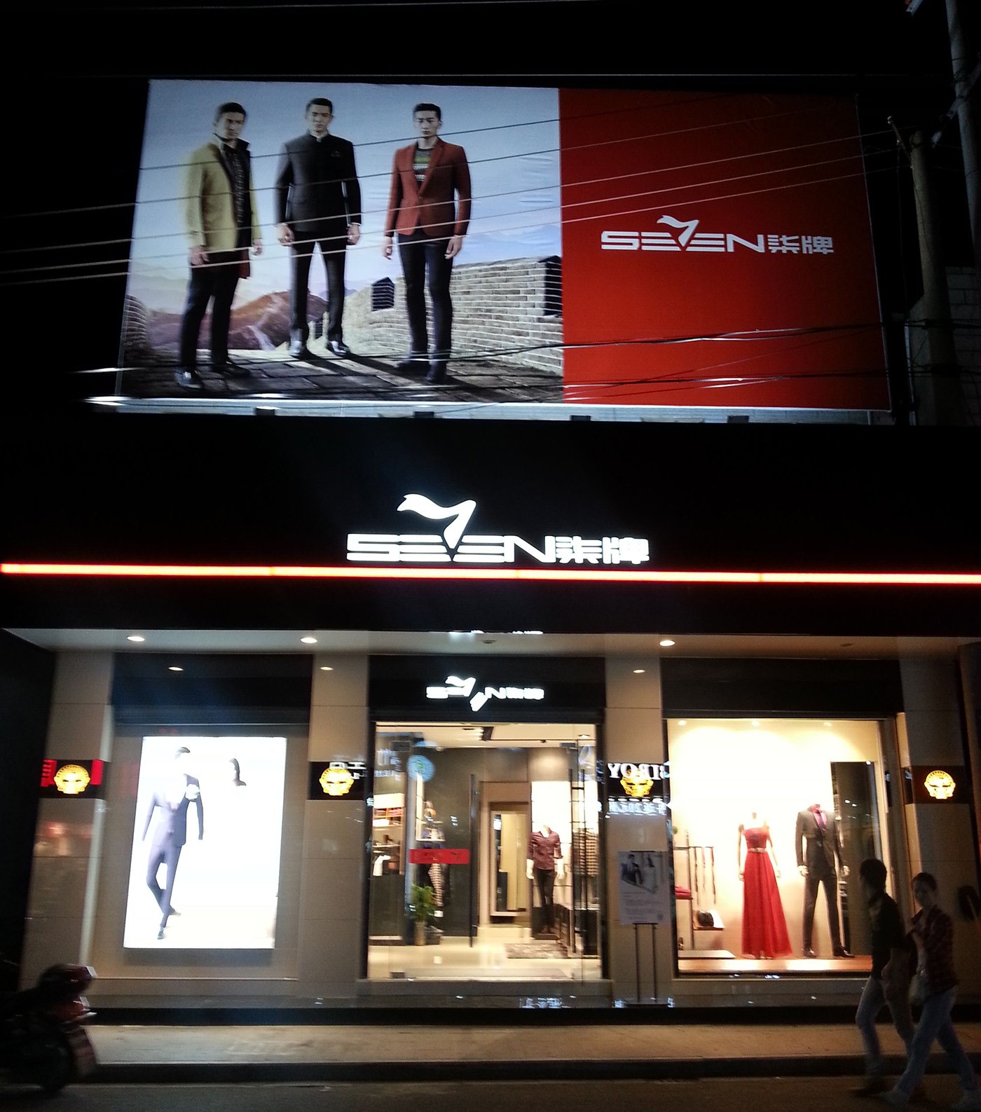 海晨為柒牌服裝制定了整套的解決方案,其中不僅僅只是有燈箱的部分,而是包括了整個(gè)店面需要用到的一切廣告展示用品。從設(shè)計(jì)、生產(chǎn)、安裝到售后服務(wù)一體化,為客戶解決問題的整體解決方案。