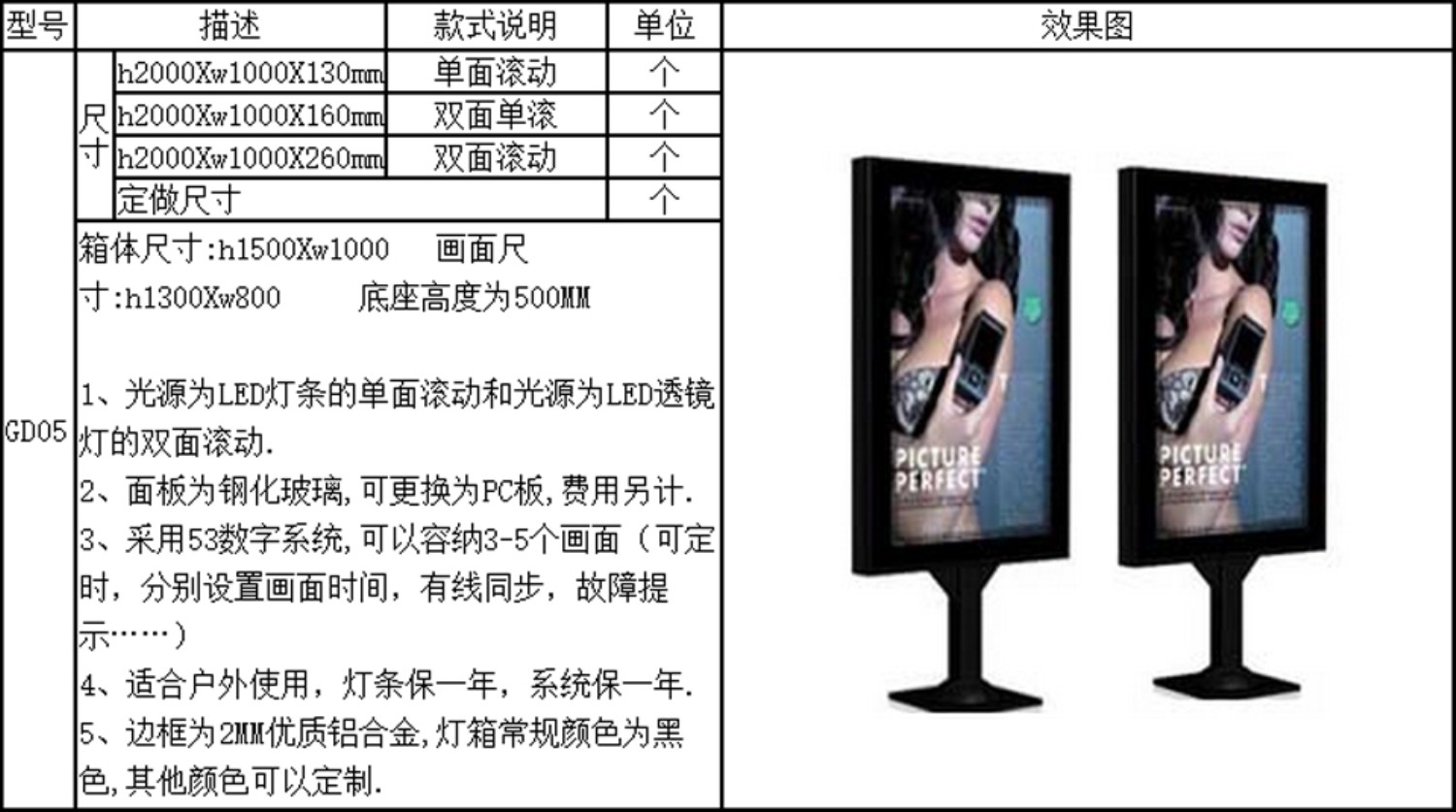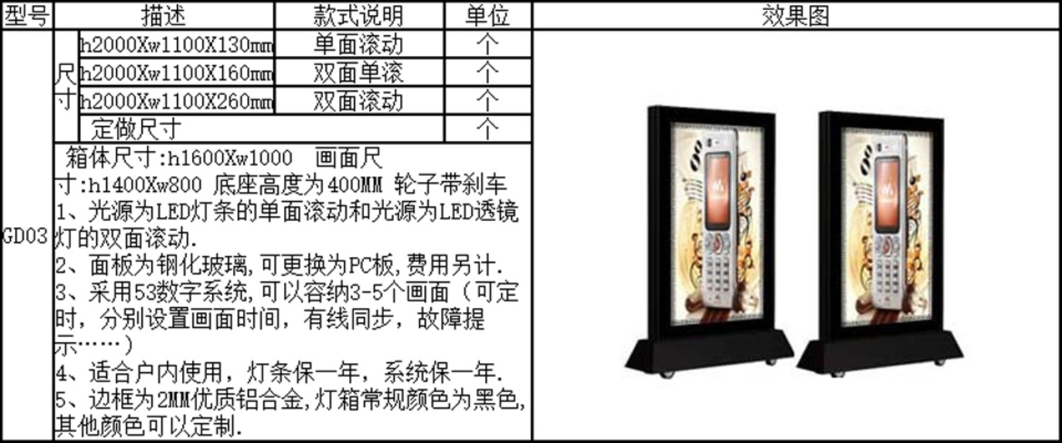 采用優(yōu)質(zhì)鋁合金邊框,使燈箱更加耐用。