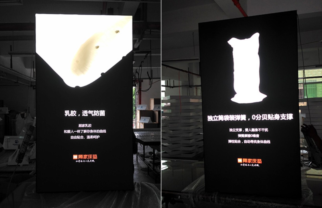 海晨為顧家家居制定了整套的解決方案,其中不僅僅只是有燈箱的部分,而是包括了整個(gè)店面需要用到的一切廣告展示用品。從設(shè)計(jì)、生產(chǎn)、安裝到售后服務(wù)一體化,為客戶解決問(wèn)題的整體解決方案。