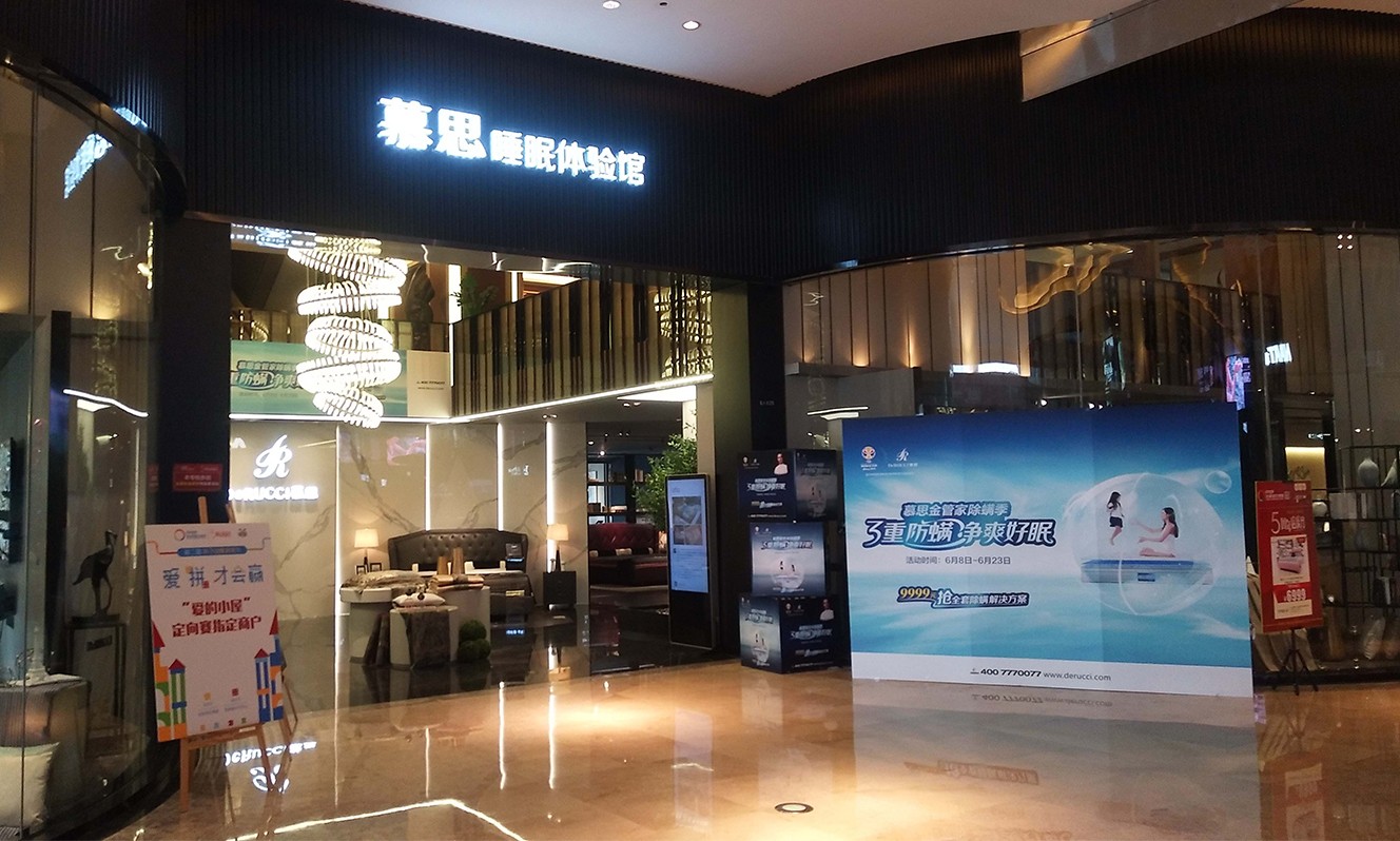 海晨為慕思床墊制定了整套的解決方案,其中不僅僅只是有燈箱的部分,而是包括了整個(gè)慕思需要用到的一切廣告展示用品。從設(shè)計(jì)、生產(chǎn)、安裝到售后服務(wù)一體化,為客戶解決問(wèn)題的整體解決方案。