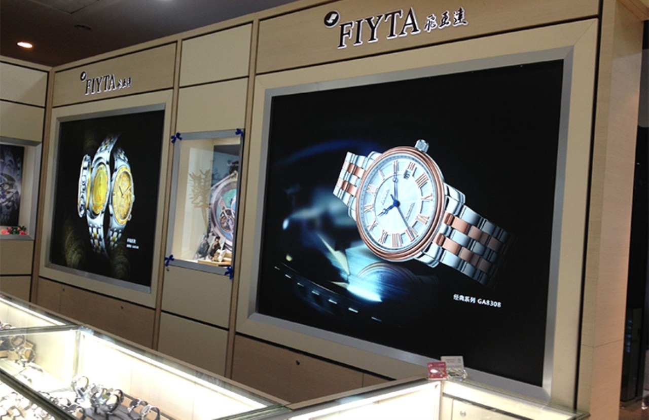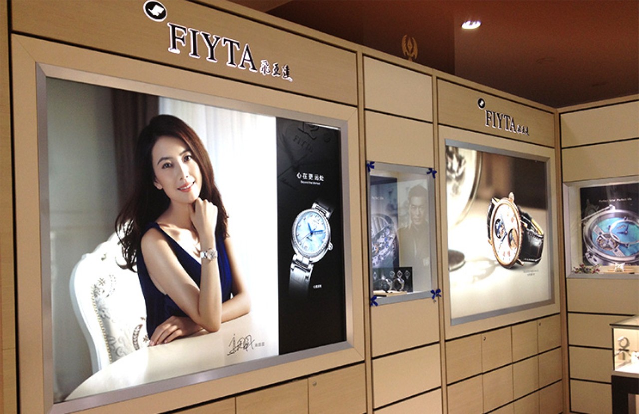 海晨為飛亞達(dá)手表制定了整套的解決方案,其中不僅僅只是有燈箱的部分,而是包括了整個(gè)店面需要用到的一切廣告展示用品。從設(shè)計(jì)、生產(chǎn)、安裝到售后服務(wù)一體化,為客戶解決問(wèn)題的整體解決方案。
